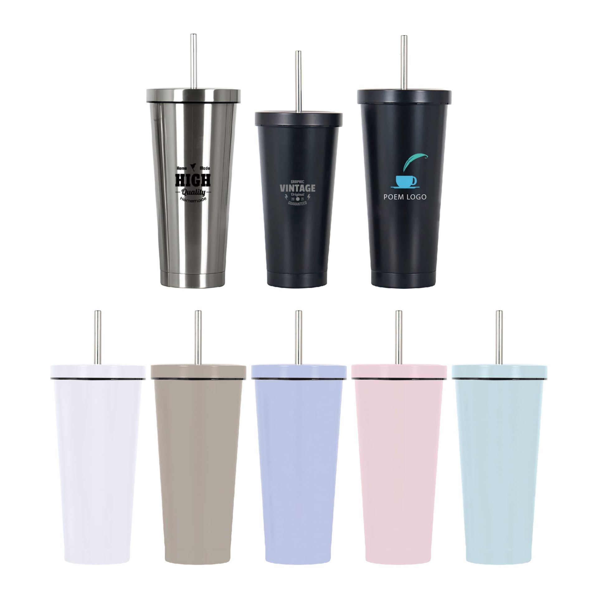 480ML/650ML Double Wall Stainless Steel Tumbler with Straw