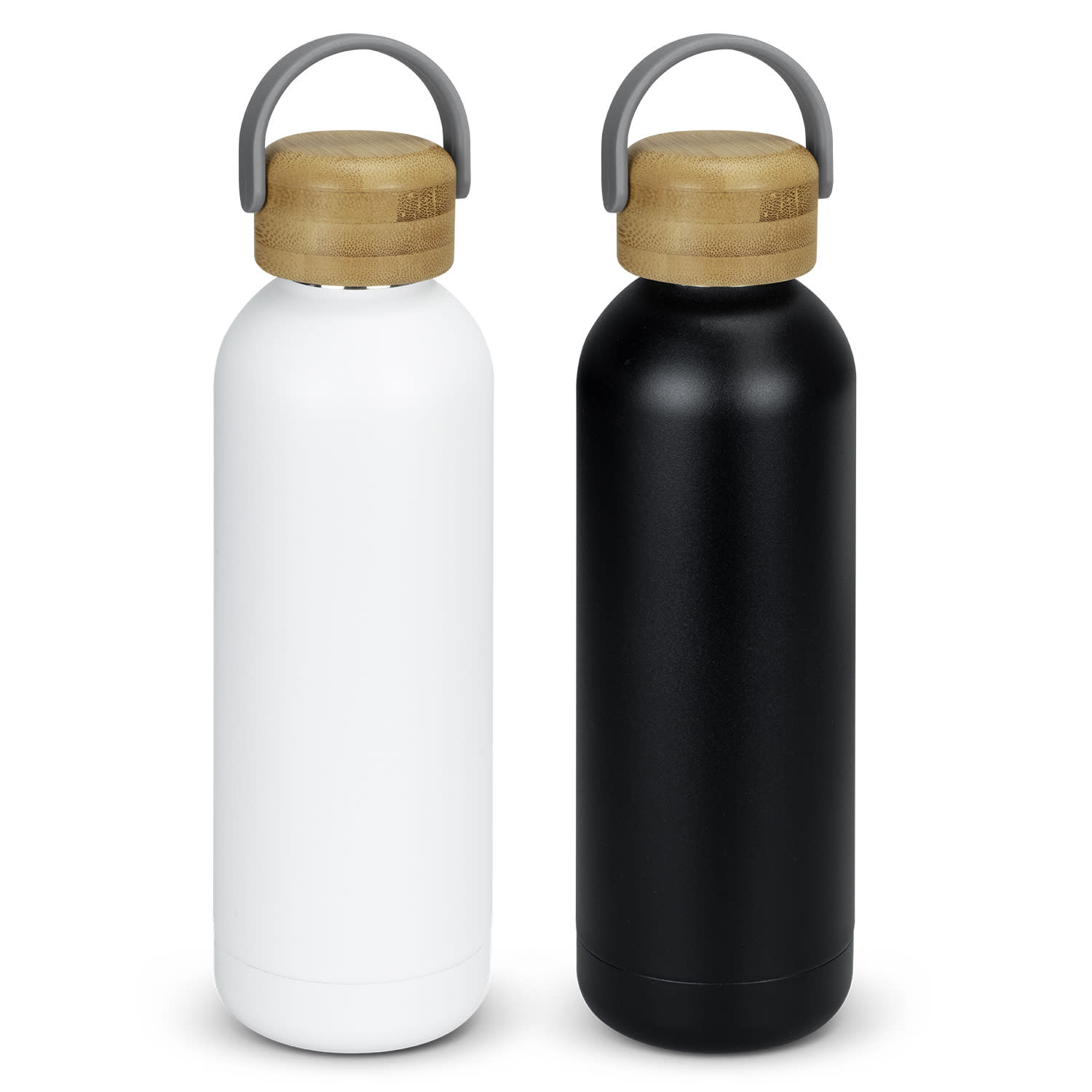 Modern 800ml single wall, stainless steel drink bottle which has an extremely durable powder coated matte finish with a secure screw on natural bamboo lid. Pasadena offers a carry lid for easy transportation, it is BPA-free and laser engraves to a shiny steel finish. Bamboo is a natural material which produces unavoidable variances in the grain pattern, colour and branding. This product is not dishwasher safe and handwashing is recommended. Features: * Modern 800ml single wall, stainless steel drink bottle * Durable powder coated matte finish * Equipped with a secure screw on bamboo lid and convenient carry handle * Optional gift box and gift box sleeve available at an additional cost